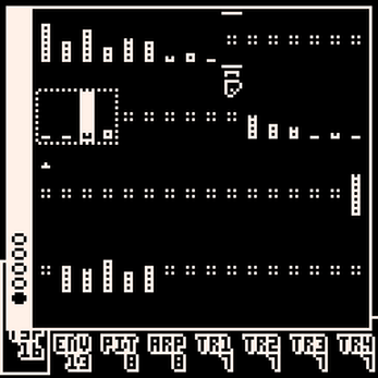 - ENV: Envelope, raises and lowers the volume. Initially set to 15-15-8-4. The flag is the sustain point.