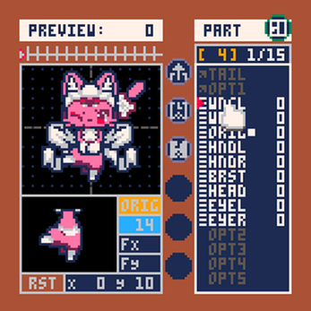 Cut a new sprite from the sprite sheet. These are then set with IDs to the parts. Original characters are included as sample data.